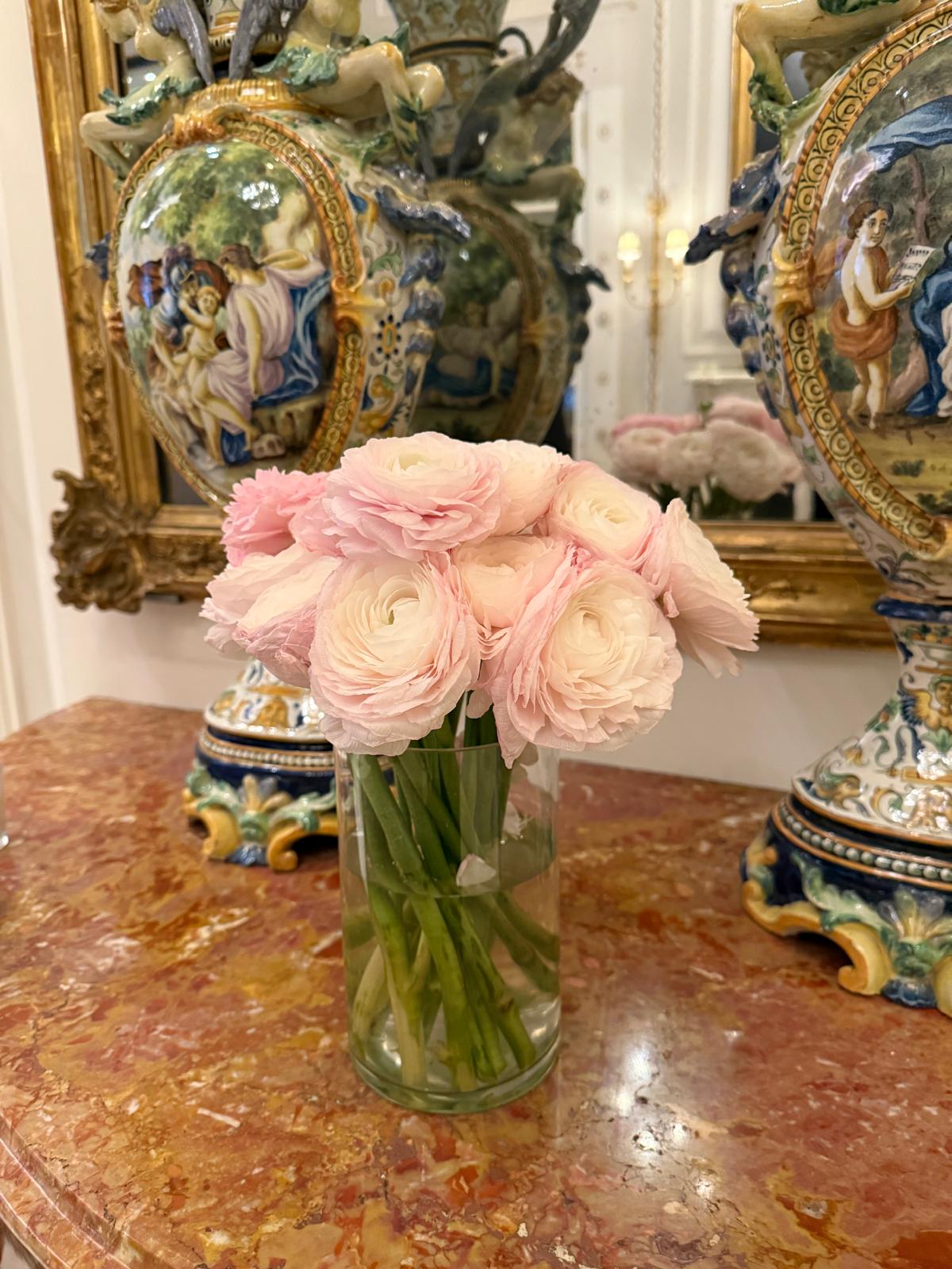Quince tallos de ranúnculos rosas con pétalos suaves y superpuestos que forman un bouquet elegante, lleno de delicadeza y encanto romántico.