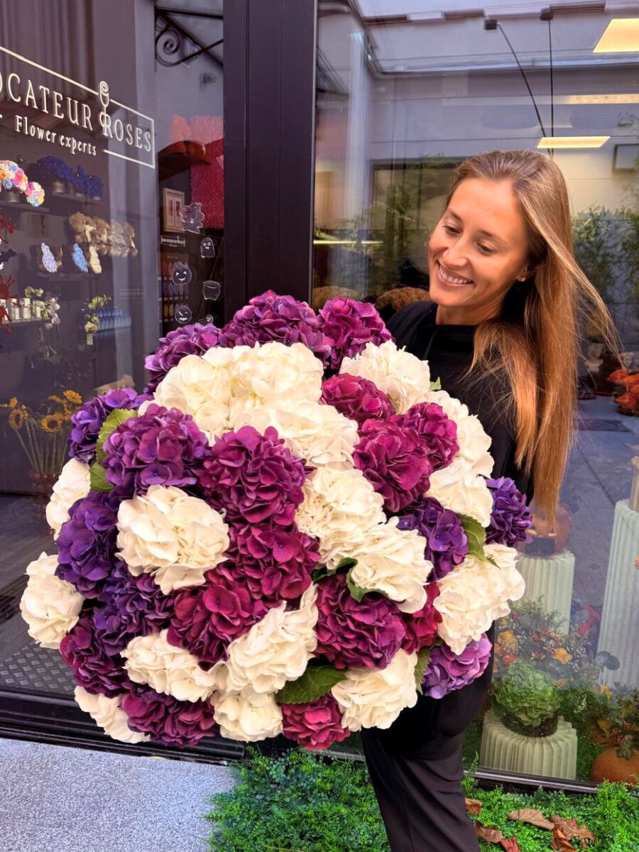 El Bouquet de 40 Hortensias Premium es una creación majestuosa que combina la fuerza del color con la suavidad de la textura. Con hortensias de gran tamaño en tonos marfil, lavanda y violeta intenso, este arreglo floral se convierte en una declaración de estilo, belleza y equilibrio natural.
