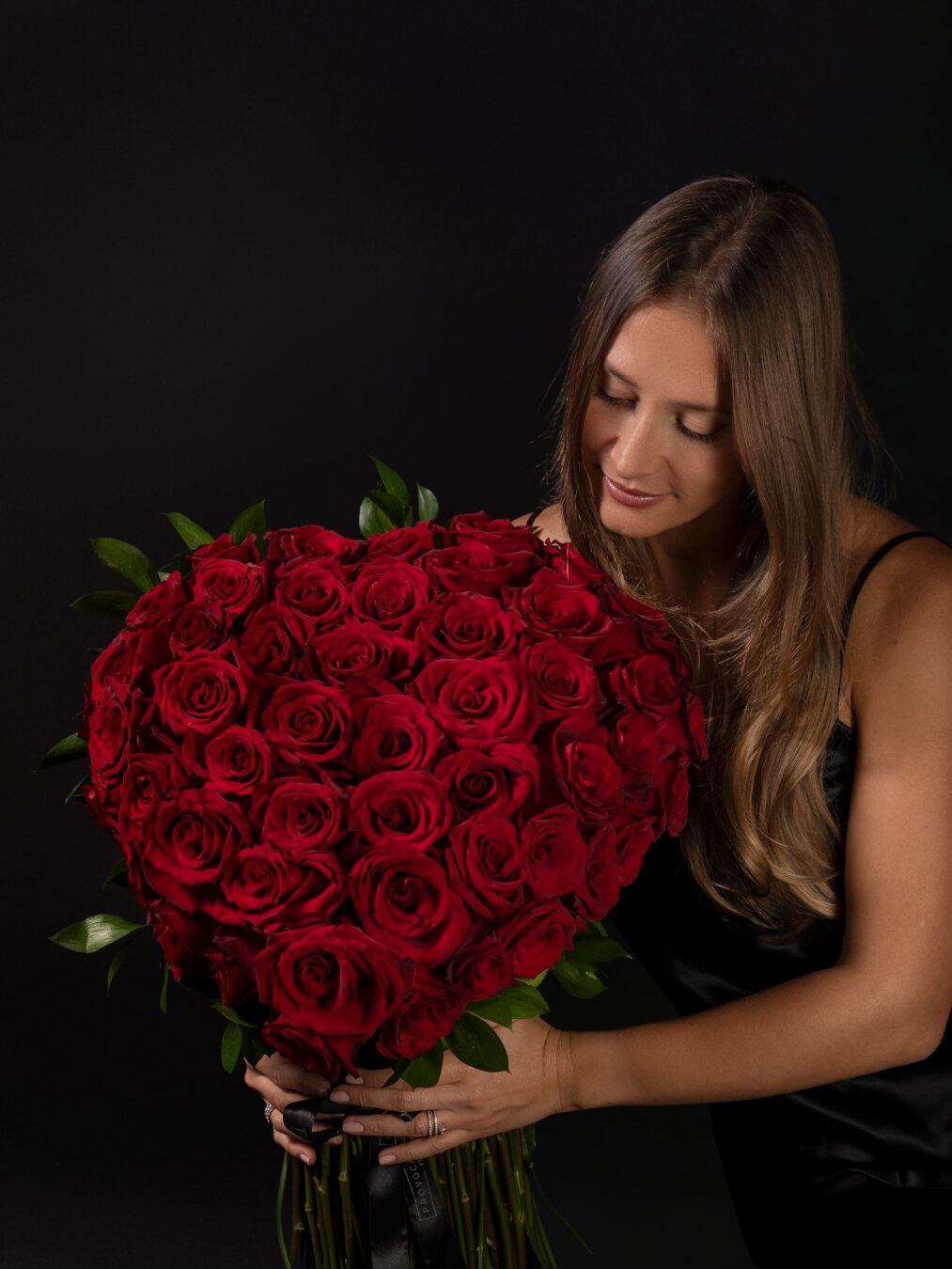 El ramo está confeccionado con rosas de la más alta calidad, seleccionadas a mano para garantizar su frescura y belleza, complementadas con un toque de verde natural para resaltar su forma única. Ideal para aniversarios, San Valentín o cualquier ocasión en la que quieras dejar huella en el corazón de esa persona especial.