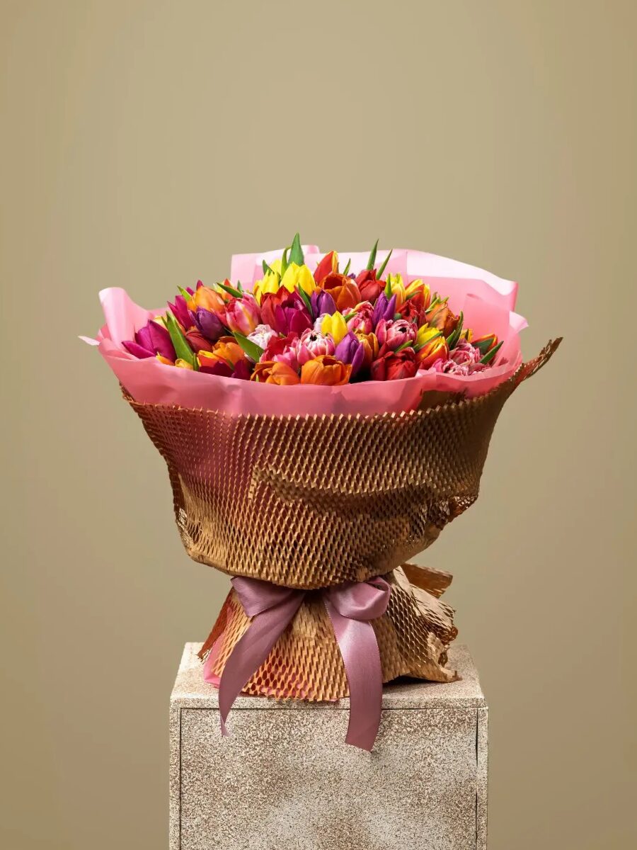 El Bouquet of 100 Mixed Tulips es más que un ramo: es un festival de colores que celebra la vida.