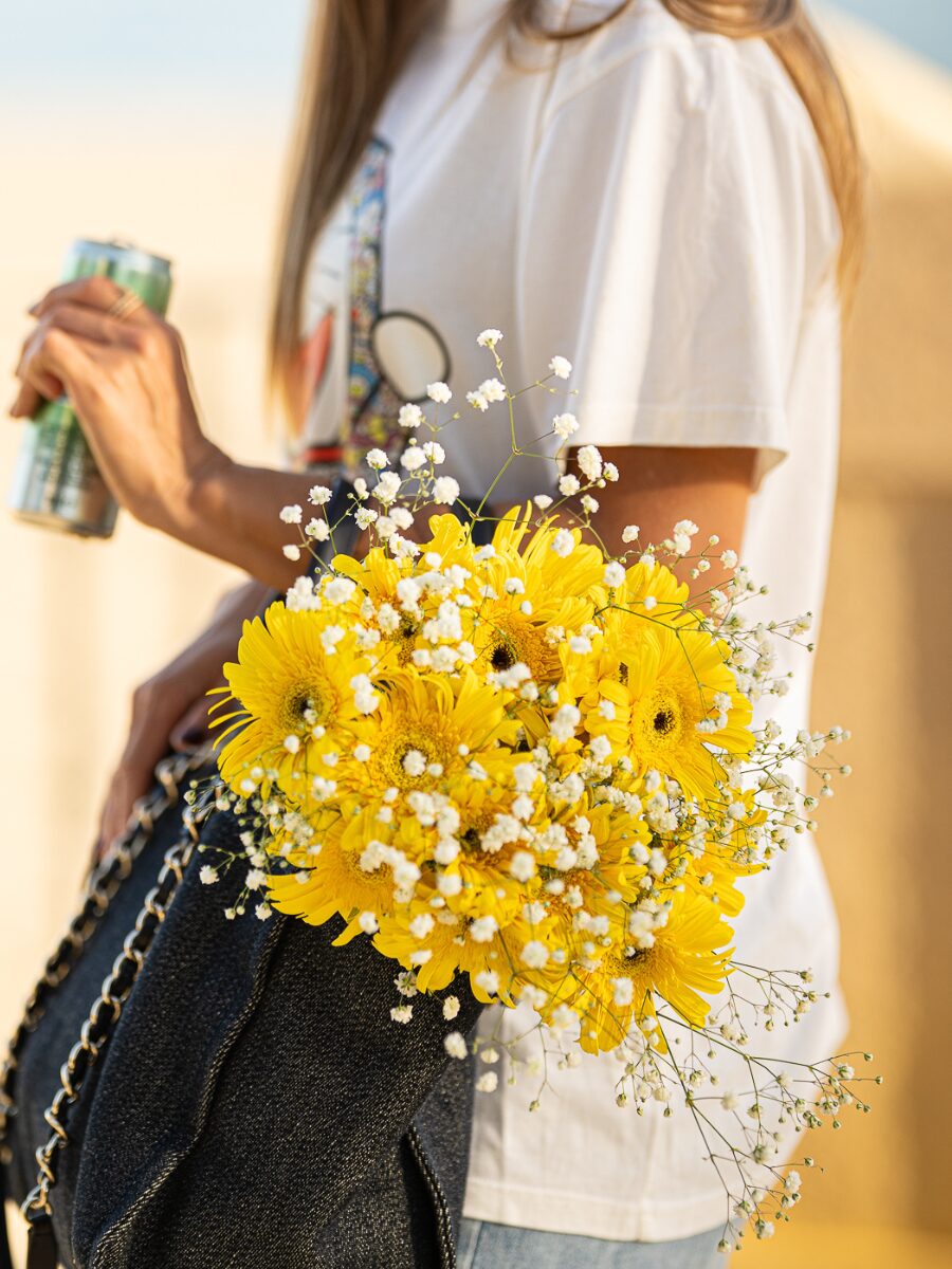 Las gerberas amarillas simbolizan amistad sincera, vitalidad y optimismo, mientras que la paniculata aporta suavidad y ternura. Juntas crean un equilibrio armónico entre fuerza y delicadeza, ideal para expresar cariño de una manera elegante y memorable.