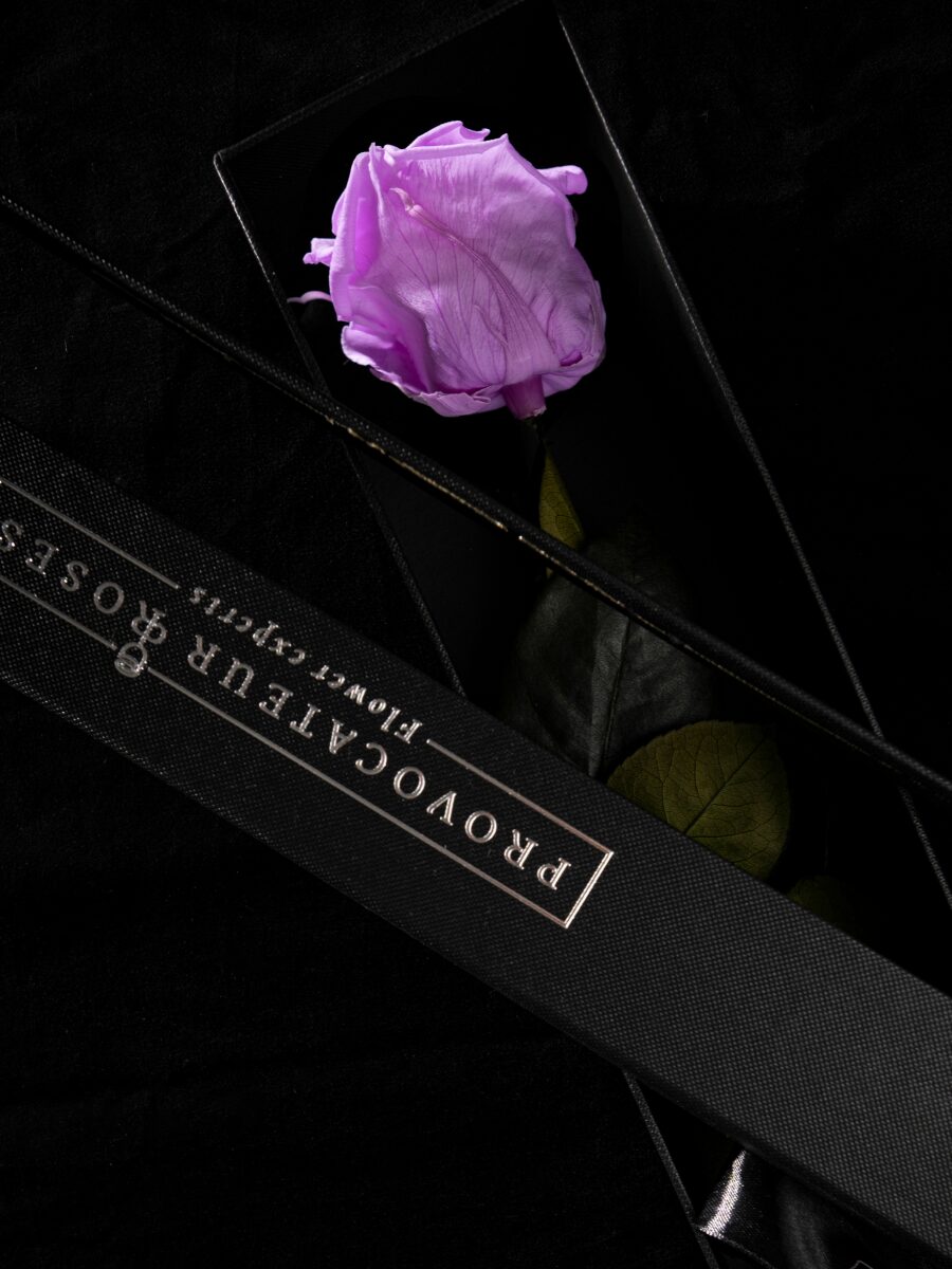 La Eternity Baby Lili Rose es la expresión más delicada de la elegancia contemporánea. Su tono lila intenso simboliza la sensibilidad, la espiritualidad y la calma interior. Una rosa natural preservada que captura el equilibrio perfecto entre dulzura y sofisticación, presentada en un estuche negro de diseño minimalista con cinta satinada.