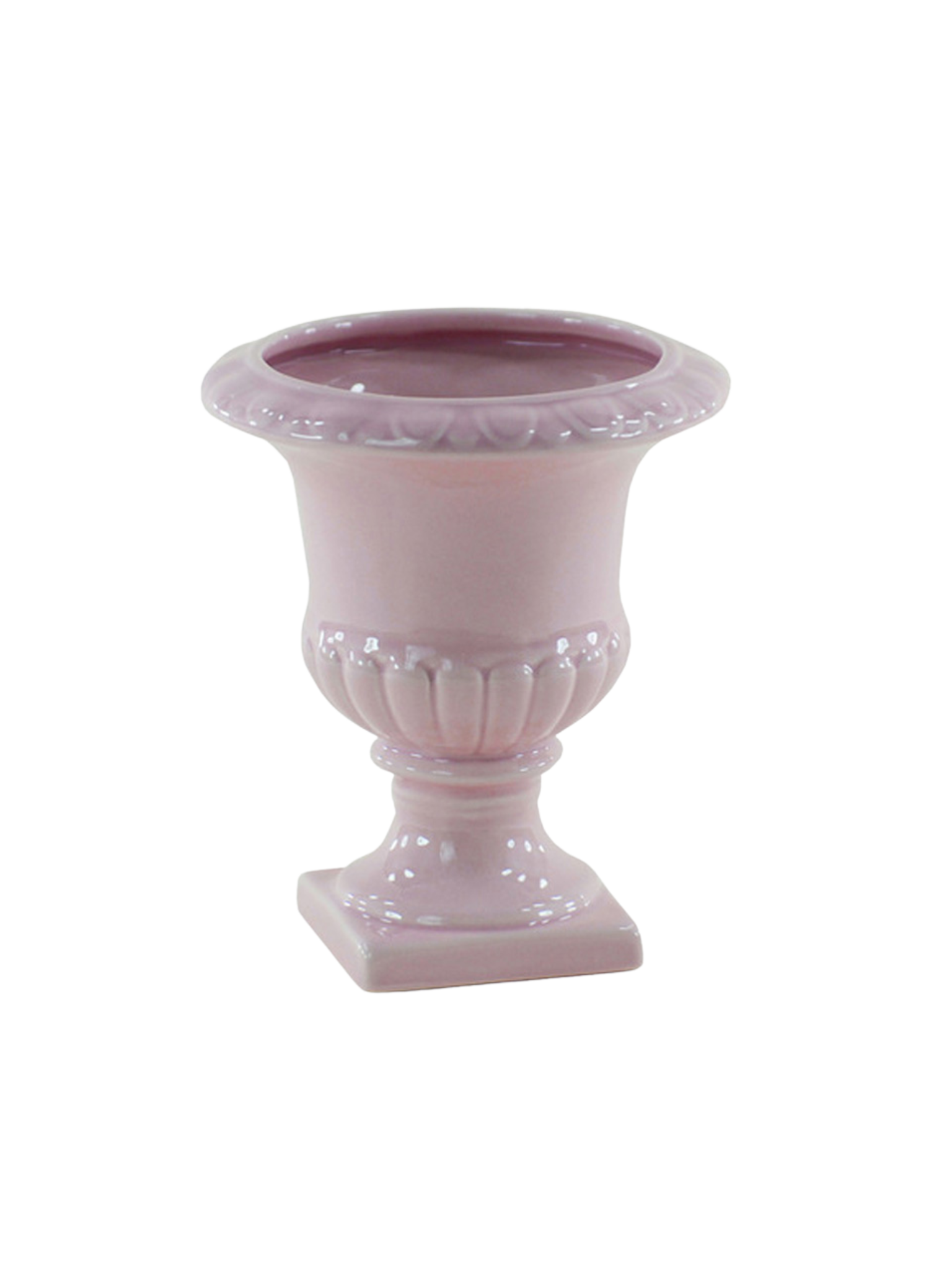 La forma de copa sobre pedestal recuerda a las piezas renacentistas, pero su acabado liso y el rosa empolvado le dan una presencia contemporánea. Es una pieza que equilibra tradición y modernidad, perfecta para ambientes femeninos, vintage o románticos.
