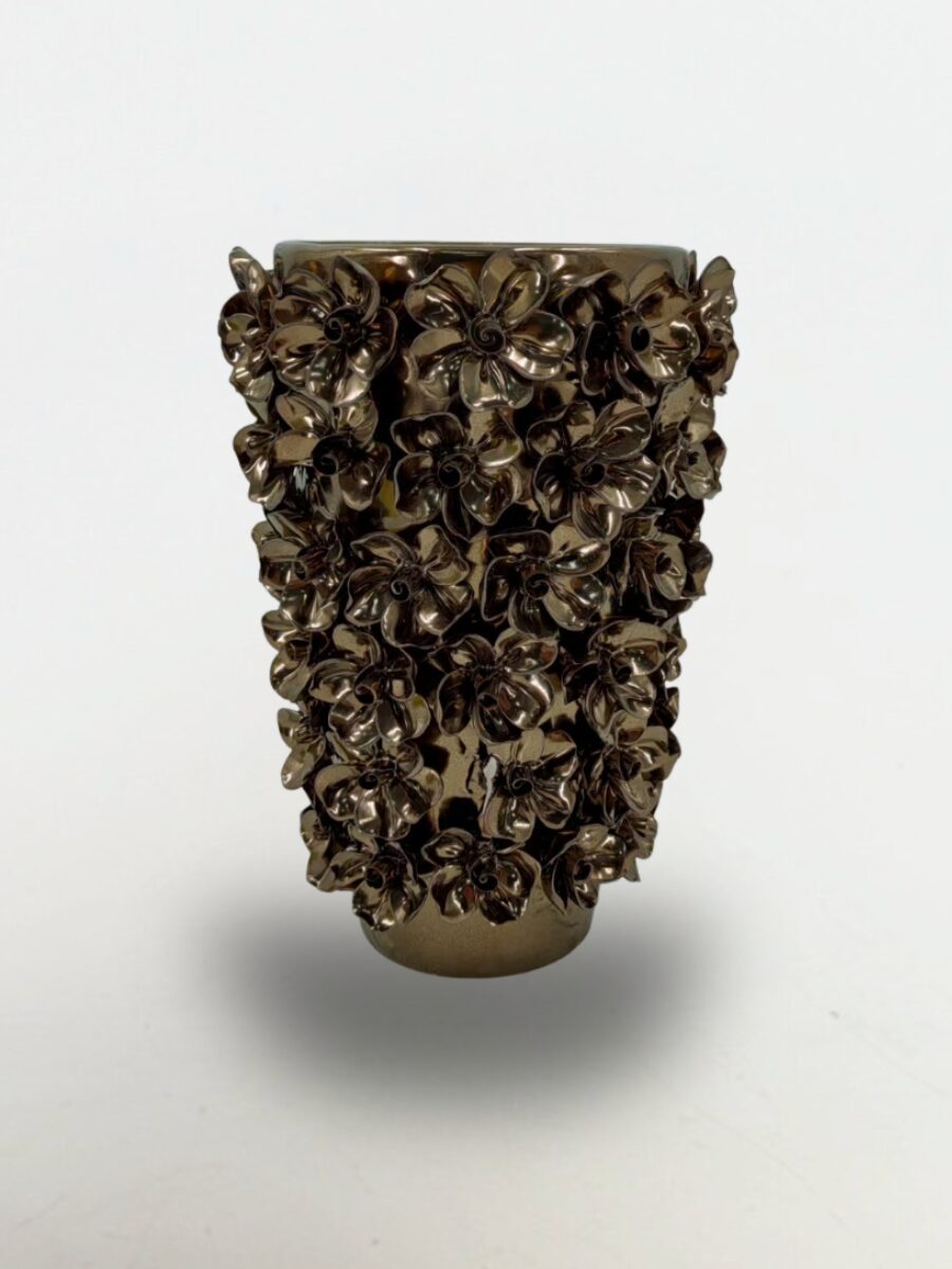 Obsidian Bloom es una pieza impactante: su relieve floral denso crea un efecto tridimensional que atrapa la mirada desde cualquier ángulo. Es un jarrón pensado para destacar, con una estética más dramática y sofisticada.