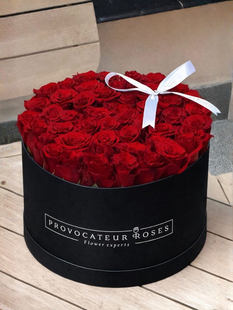 Caja floral compuesta por 40 rosas rojas de Ecuador, seleccionadas por su calidad premium y presentadas en las clásicas cajas de Provocateur Roses. Una composición única y elegante, creada para expresar intensidad, cuidado y sofisticación.
