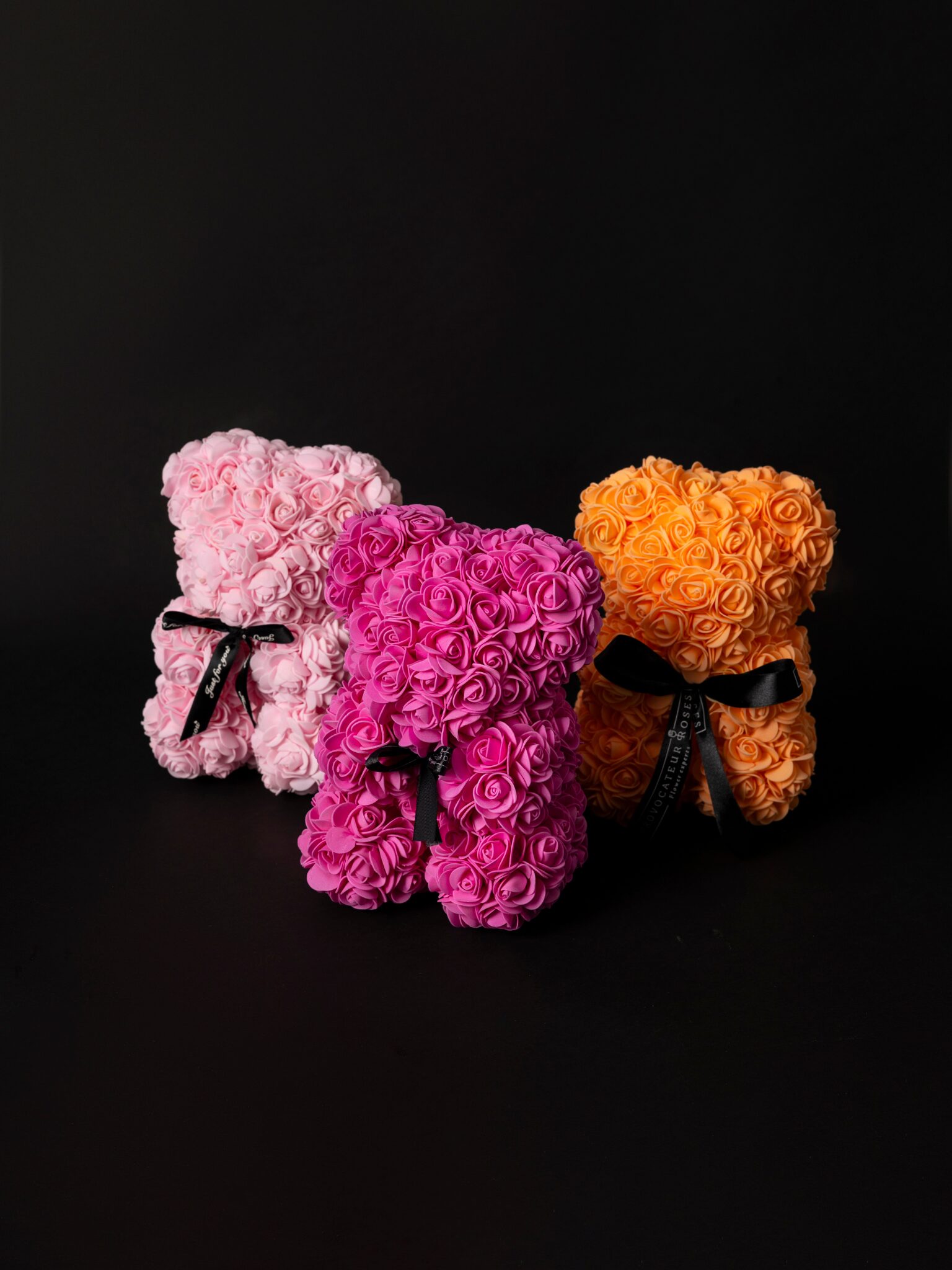 Oso hecho de foam recubierto de rosas de goma eva con lazo en el pecho. Si lo ves ahora y te gusta imagínate tenerlo entre tus manos. El regalo perfecto.