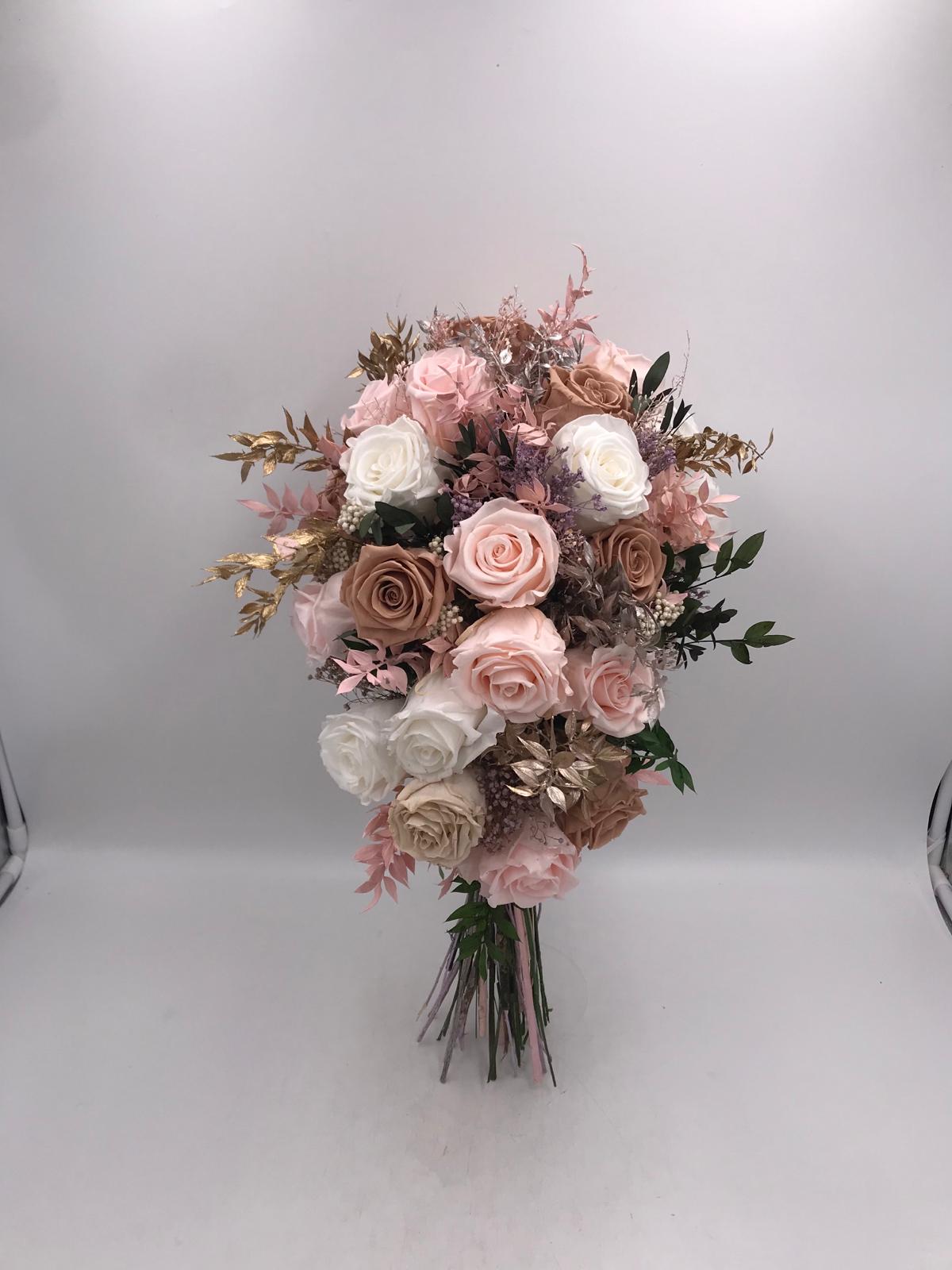 Exclusivo ramo formado por rosas preservadas premium. Perfecto para bodas.