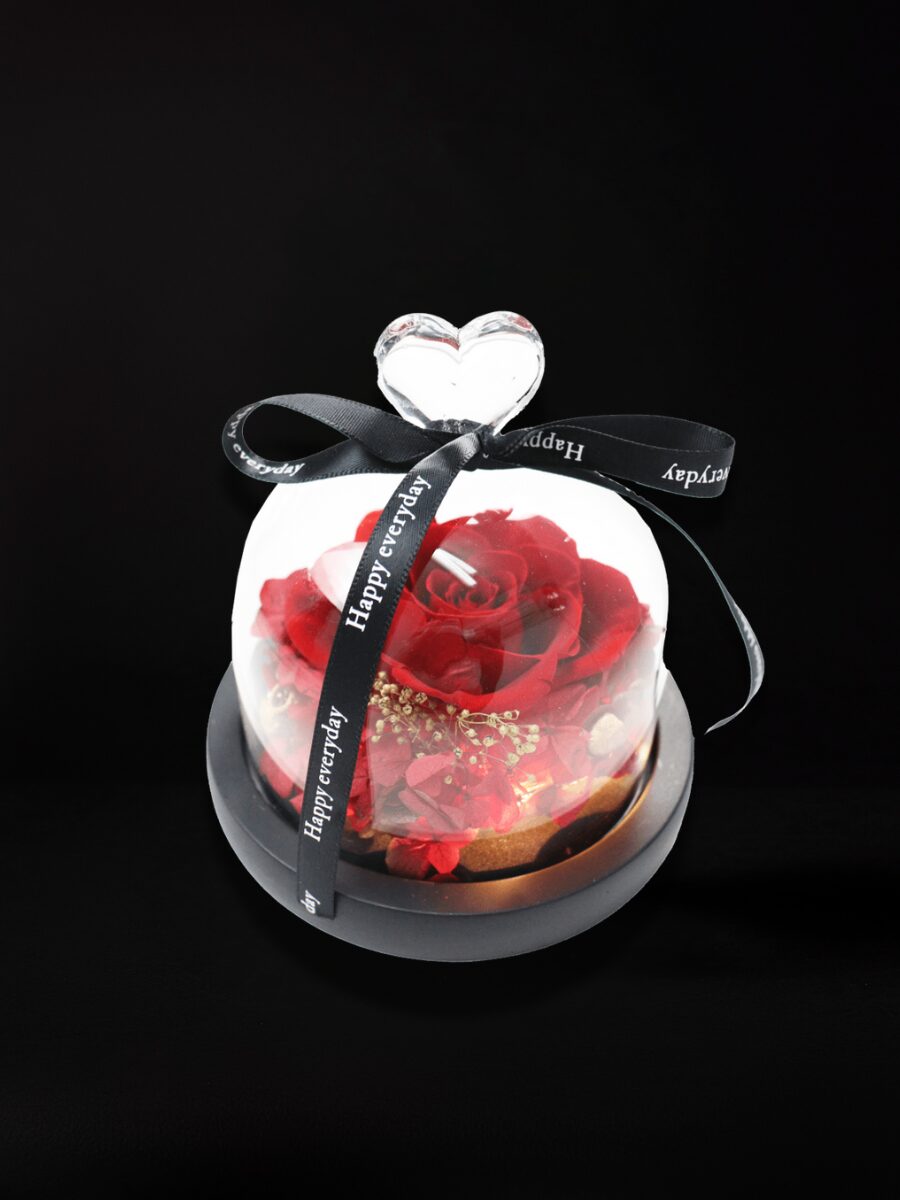 Contenido en cristal de Bohemia, es la decoración perfecta para cualquier rincón elegante, permite apreciar toda la belleza de nuestras rosas y aportar estilo a cualquier espacio.