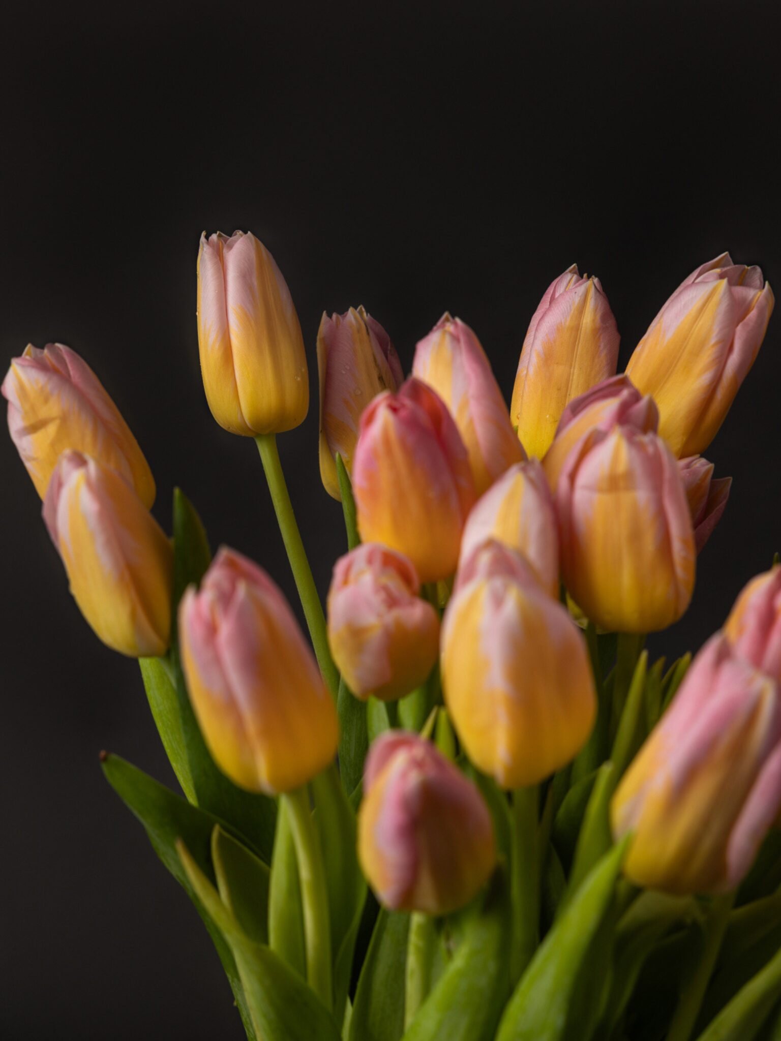 Disponible en ramos de 10 o 20 tallos, este tulipán es ideal para regalar en cumpleaños, aniversarios o simplemente para llenar de luz y color cualquier rincón del hogar