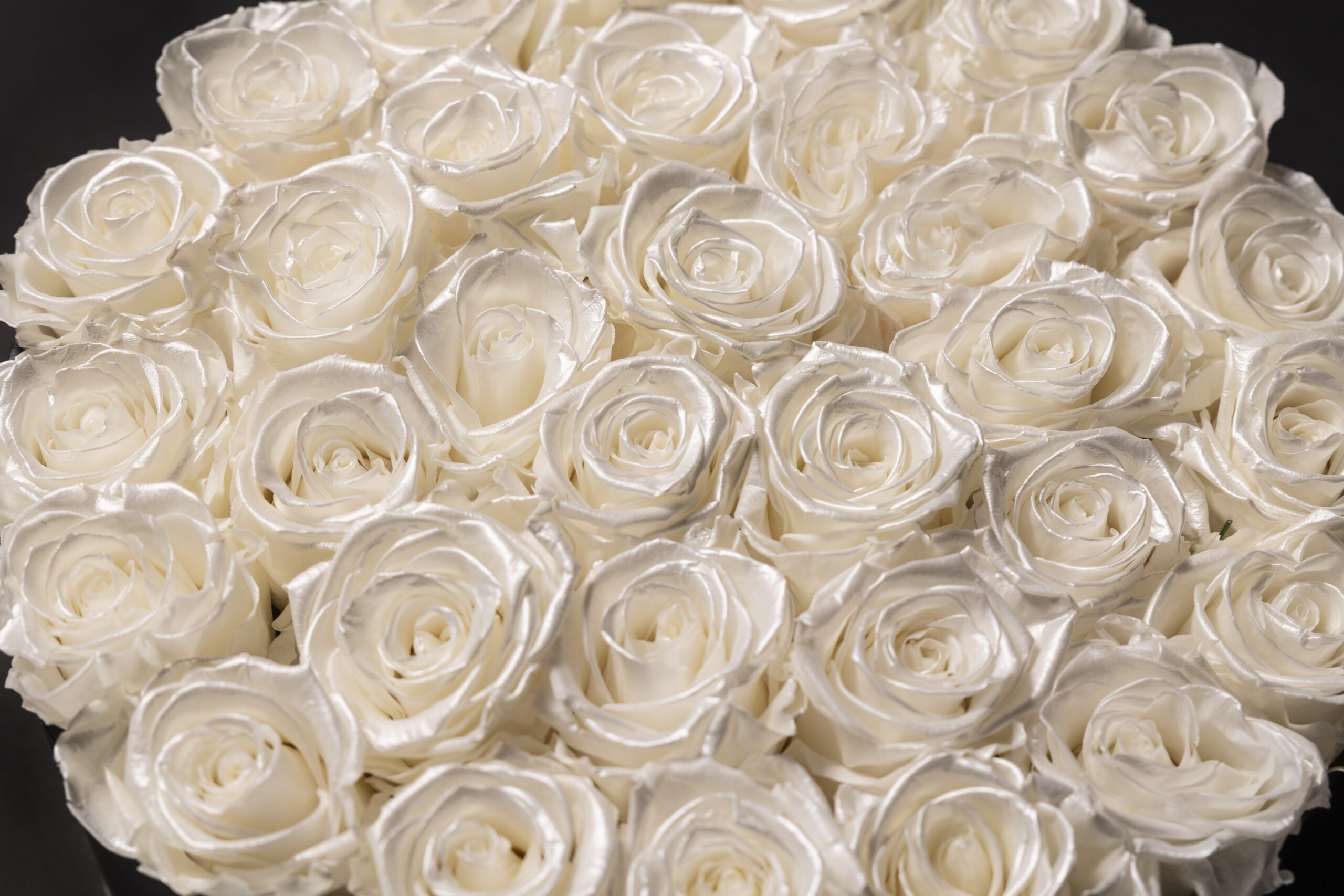 Lo que hace realmente especial a esta edición limitada es su deslumbrante color perlado, un tono único que simboliza pureza, lujo y sofisticación. Cada rosa ha sido tratada con técnicas de conservación de vanguardia, asegurando que cada pétalo mantenga su delicadeza y luminosidad.